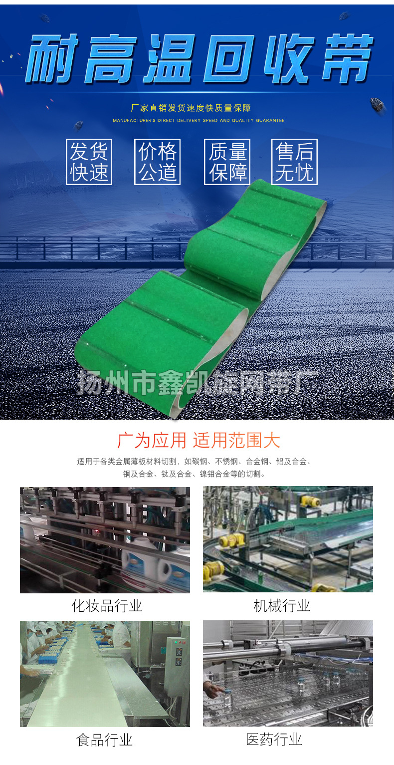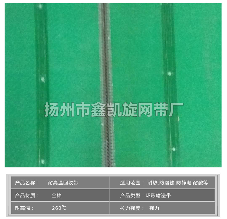 订货号 : **加工定制 : 是货号 : 002样品或现货 : 现货是否标准件 : 非标准件是否进口 : 否品牌 : 鑫凯旋型号 : NY材质 : 帆布输送带类型 : 环形输送带皮带扣接口适用环境 : 耐热,耐高温,防腐蚀,耐油,耐磨,防静电,耐酸,耐寒,防滑,防潮,耐碱应用范围 : 机械制造极板铸造