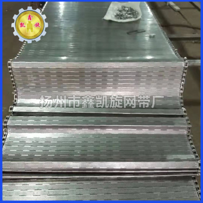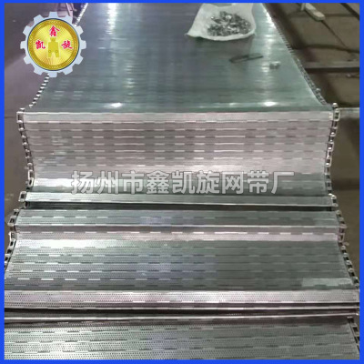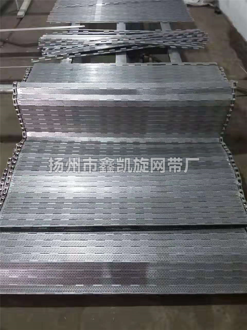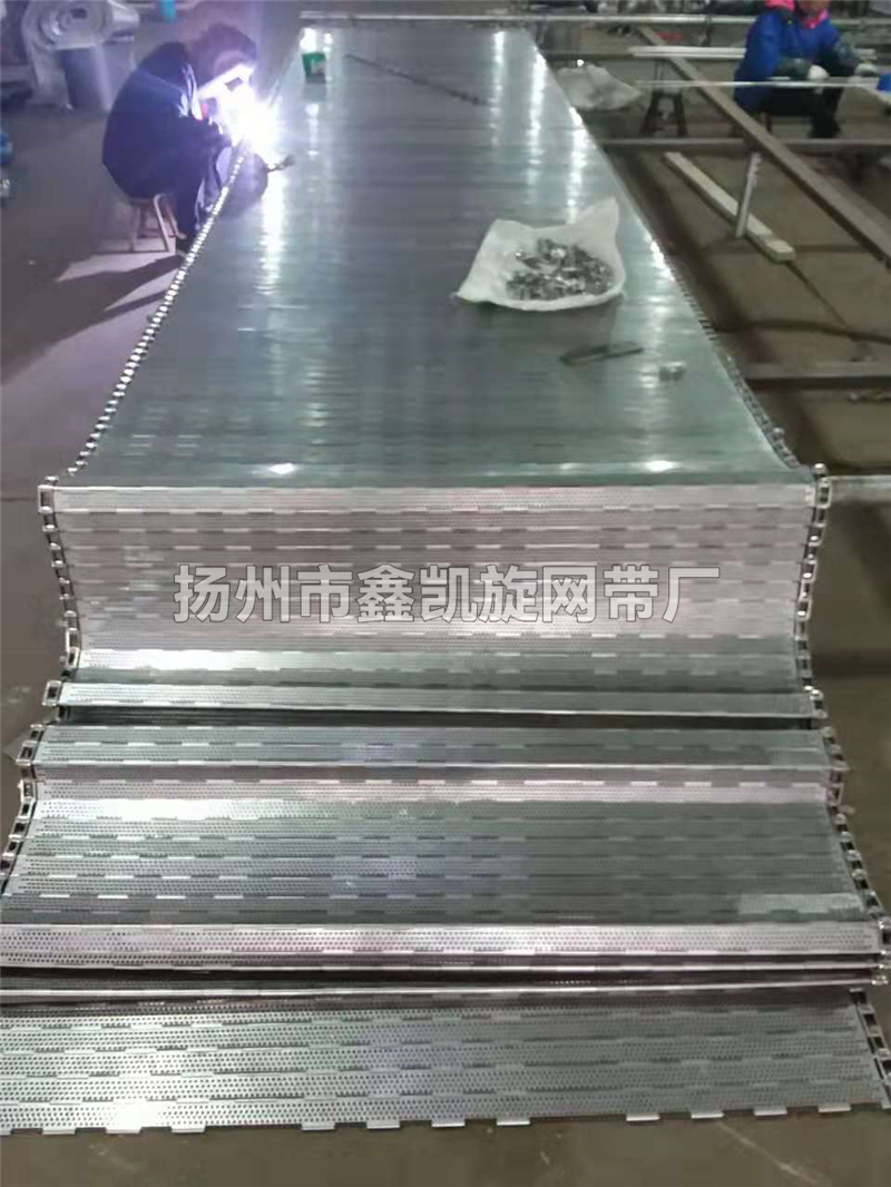 链板网带非常坚固,由不锈钢链条驱动,采用精致不锈钢板材生产,适用于输送细高密度的物件输送过程中运转平稳,安装更换方便快捷,使用寿命长,适用于中等大负载输送。链板采用不锈钢板弯曲形成合叶,使用串杆将合叶串在一起。两端的链条也可以使用开口销或者垫片固定方便维护。