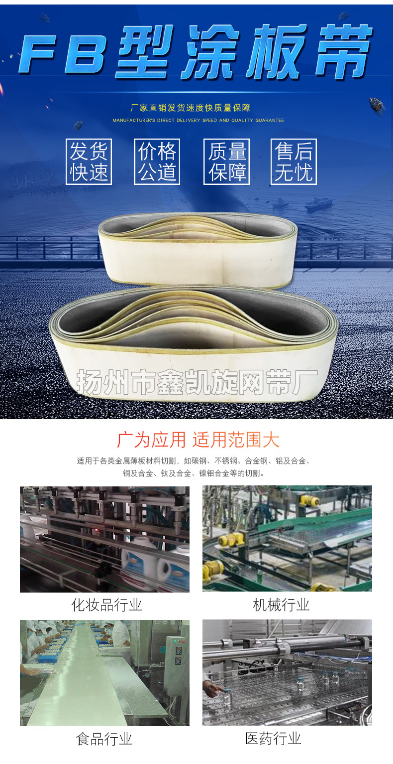 订货号 : 0894加工定制 : 是货号 : 019样品或现货 : 现货是否标准件 : 非标准件是否进口 : 否品牌 : 鑫凯旋型号 : FB材质 : 纯棉输送带类型 : 环形输送带适用环境 : 耐磨,防静电,耐酸,防潮,耐碱应用范围 : 应用于铅酸管式蓄电池极板涂板机常用规格:6 x 740 x 2540, 8 x 670 x 3890